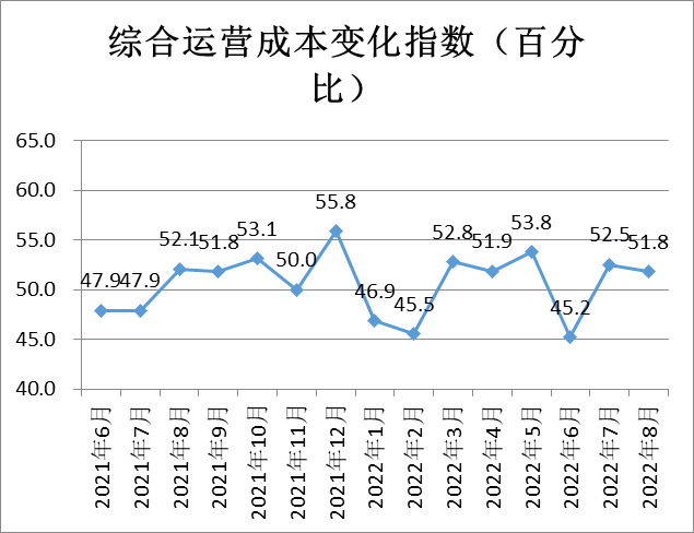 綜合運營成本反向指數(shù)為51.8%,較上月微降0.7個百分點,維持經(jīng)營成本基本穩(wěn)定。