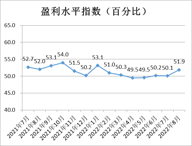 盈利水平指數(shù)為51.9%,較上月小幅上升1.8個百分點,表明商品經(jīng)營類企業(yè)對本月盈利預(yù)期明顯提升。