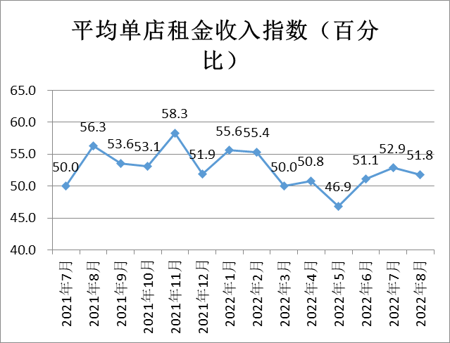 平均單店租金收入指數(shù)為51.8%,較上月小幅下降1.1個百分點,表明租賃經(jīng)營類企業(yè)經(jīng)營穩(wěn)中有降。