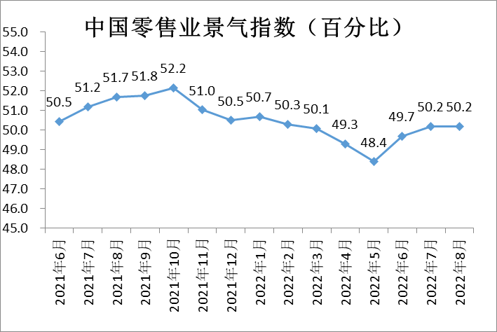 8月中國零售業(yè)景氣指數(shù)為50.2%,與上月持平