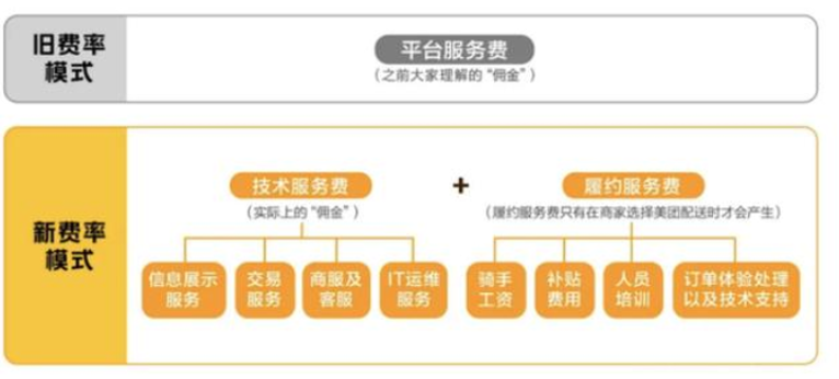 去年,在監(jiān)管及商家降傭呼聲的熱潮下,美團(tuán)開(kāi)展了一場(chǎng)傭金“透明化改革”,將原先按比例收取的傭金,拆分成技術(shù)服務(wù)費(fèi)和履約服務(wù)費(fèi)兩部分,并通過(guò)時(shí)間分段計(jì)費(fèi)和距離分段計(jì)費(fèi)的方式對(duì)履約服務(wù)費(fèi)進(jìn)行約定。