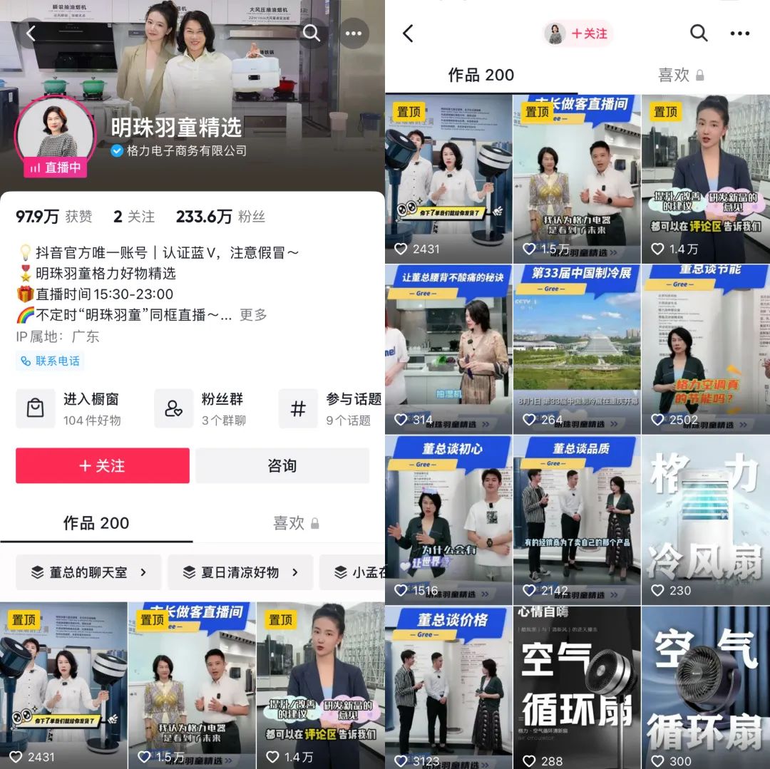 格力的董宇輝,可以這樣理解董明珠給孟羽童的定位。正如東方甄選陸續(xù)開通了東方甄選美麗生活、東方甄選之圖書、東方甄選自營(yíng)產(chǎn)品等矩陣賬號(hào),除了明珠羽童精選賬號(hào),格力也開通了明珠羽童空調(diào)直播間、明珠羽童冰洗直播間。