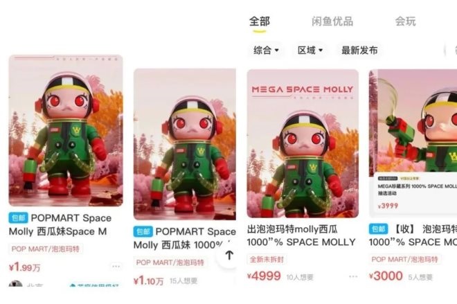 利潤(rùn)大幅下跌的另一面,是以Molly為代表的泡泡瑪特潮玩產(chǎn)品在閑魚暴跌七成;乜串(dāng)年Molly能賣到數(shù)萬(wàn)元的往事,只能說(shuō)是純屬巧合。