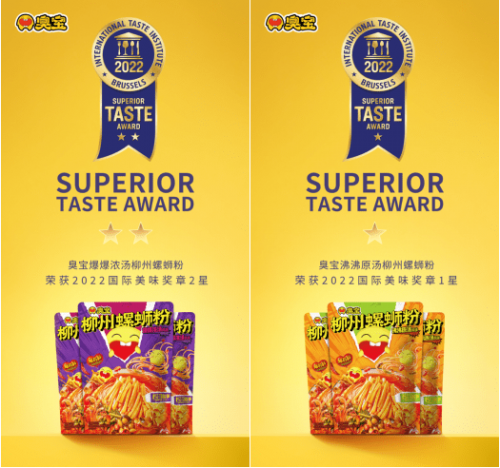 今年6月,由國際風味評鑒所(International Taste Institute)創(chuàng)辦的具有食品界“奧斯卡”之稱的國際美味獎章(Superior Taste Award)正式公布了2022年度全球食品及飲料評鑒結果,臭寶爆爆濃湯柳州螺螄粉斬獲美味獎2星獎章,臭寶沸沸原湯柳州螺螄粉斬獲美味獎1星獎章。據(jù)了解,臭寶品牌此次為首次參評,也成為了行業(yè)內(nèi)首個獲得美味獎2星獎章的螺螄粉品牌,使得中國非遺美食螺螄粉在國際范圍再度獲得極高認可,進一步打開全球知名度。