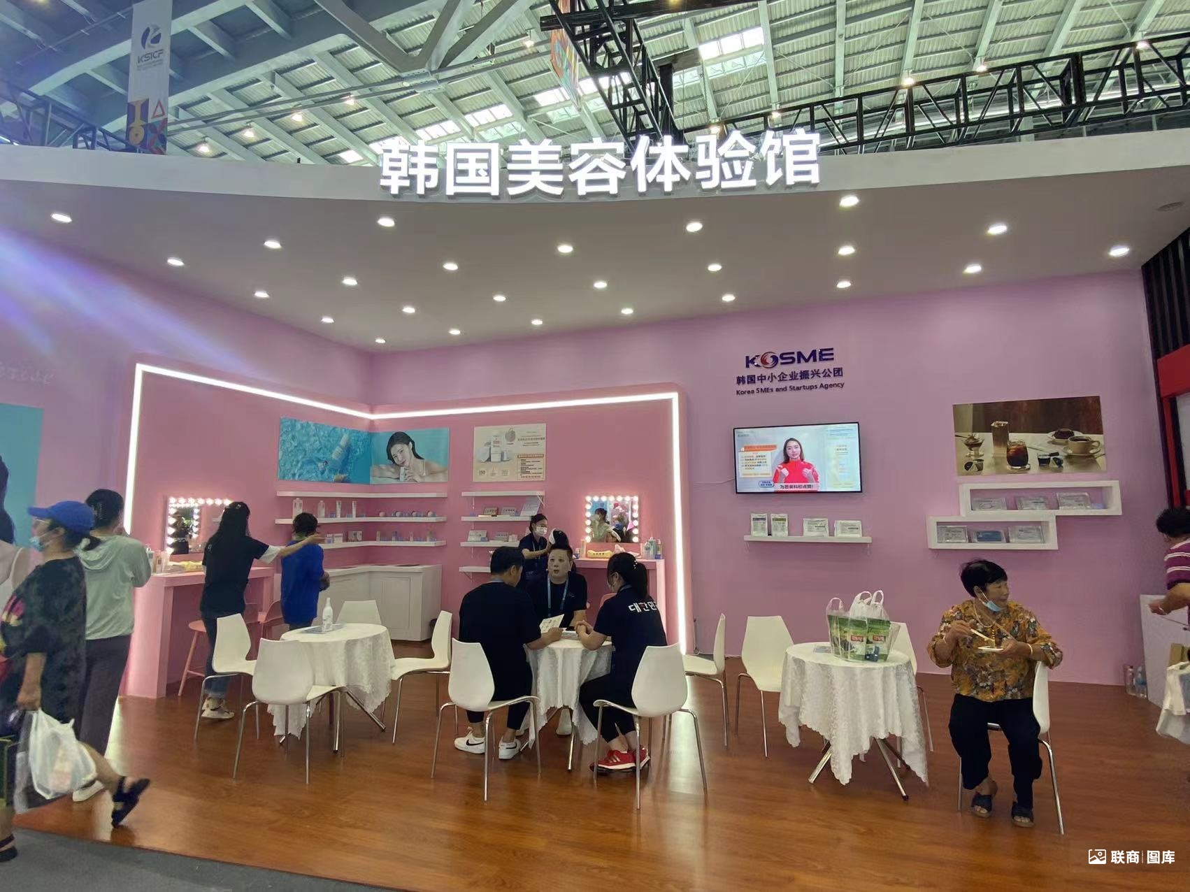 E5館還專門設(shè)有韓國優(yōu)秀商品網(wǎng)紅直播基地,擺放韓國優(yōu)秀商品供人們參觀。