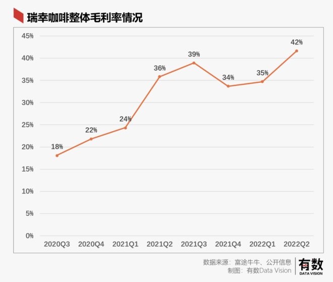2021年二季度,瑞幸憑借整體毛利率從24%達(dá)到了36%。毛利率是企業(yè)盈利的前提,借此瑞幸首次實現(xiàn)了經(jīng)營層面利潤轉(zhuǎn)正,在此基礎(chǔ)上,2022年一季度首次實現(xiàn)了整體盈利。