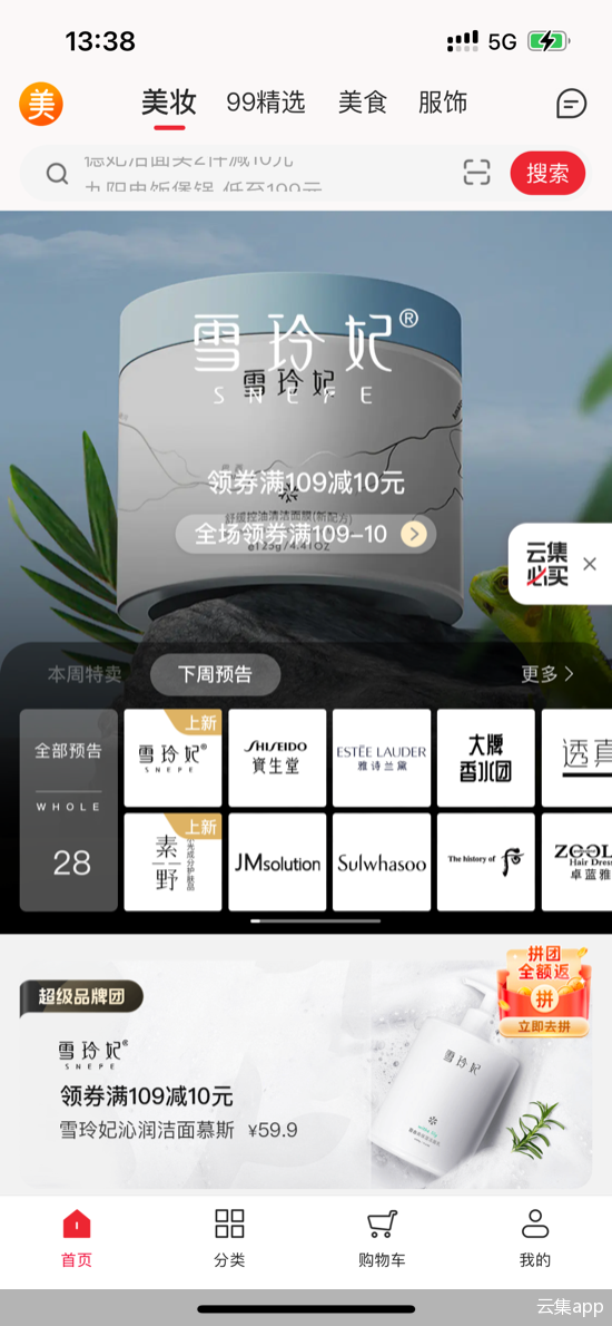 社交電商云集App的開屏語又換了。北京商報記者瀏覽發(fā)現(xiàn),云集上線了全新的slogan“上云集,美妝大牌3折起”,替代了“爆款美食上云集”。在首頁C位“本周特賣”欄目中,除了蘭蔻、海藍之謎、聯(lián)合利華等國際知名品牌之外,素野、P&S這類自有品牌也占有一席之地。