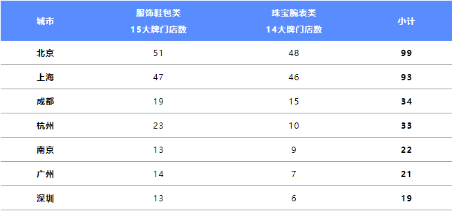 我們從國內(nèi)有一定奢侈品牌聚集度的一線、二線城市中,選取了上海、北京、成都、杭州、南京、廣州、深圳七個(gè)城市為主要研究對象。這幾個(gè)城市的高端購物中心,業(yè)績長年排在全國前列。