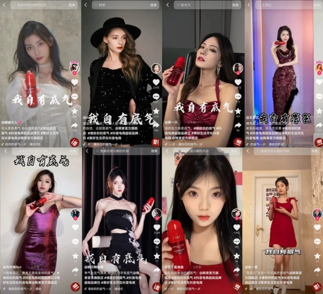 這種符合抖音特色,簡單直接卻能深度調(diào)動全員參與的挑戰(zhàn)賽,能快速擴大品牌聲量,詮釋韓束“給你底氣”的主旨,強化品牌形象,帶給消費者深度互動,增強挑戰(zhàn)賽熱度,逐漸輻射至全網(wǎng)。話題#誰給你的底氣 成功為活動造勢。