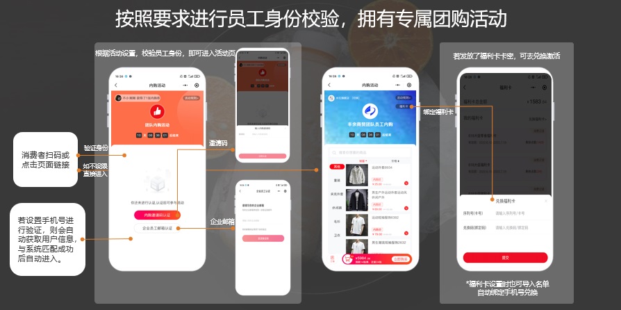 企業(yè)員工內(nèi)購是員工福利發(fā)放的一種方式,商家在特定時間以專供價商品同時提供給合作企業(yè)的員工,員工可以通過企業(yè)福利卡購買,結(jié)算則是通過企業(yè)統(tǒng)一線下對公結(jié)算。