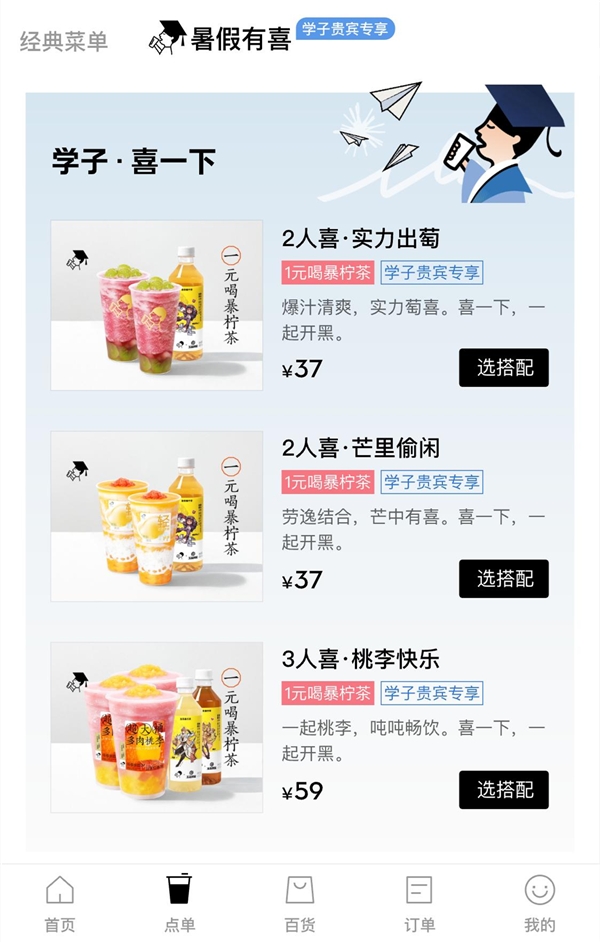 除了以上權(quán)益,喜茶還會推出各類針對學(xué)生用戶的優(yōu)惠套餐。