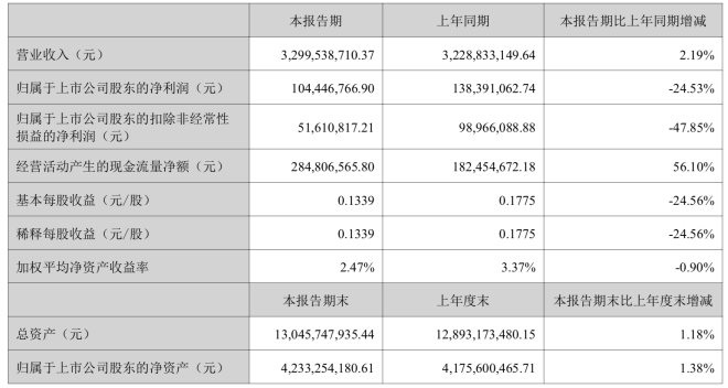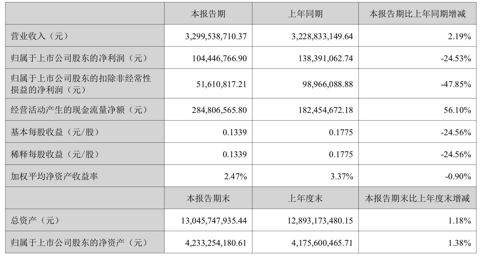 根據(jù)公告,2022年上半年合肥百貨實現(xiàn)營業(yè)收入約33億元,同比增加2.19%;歸屬于上市公司股東的凈利潤約1.04億元,同比減少24.53%。
