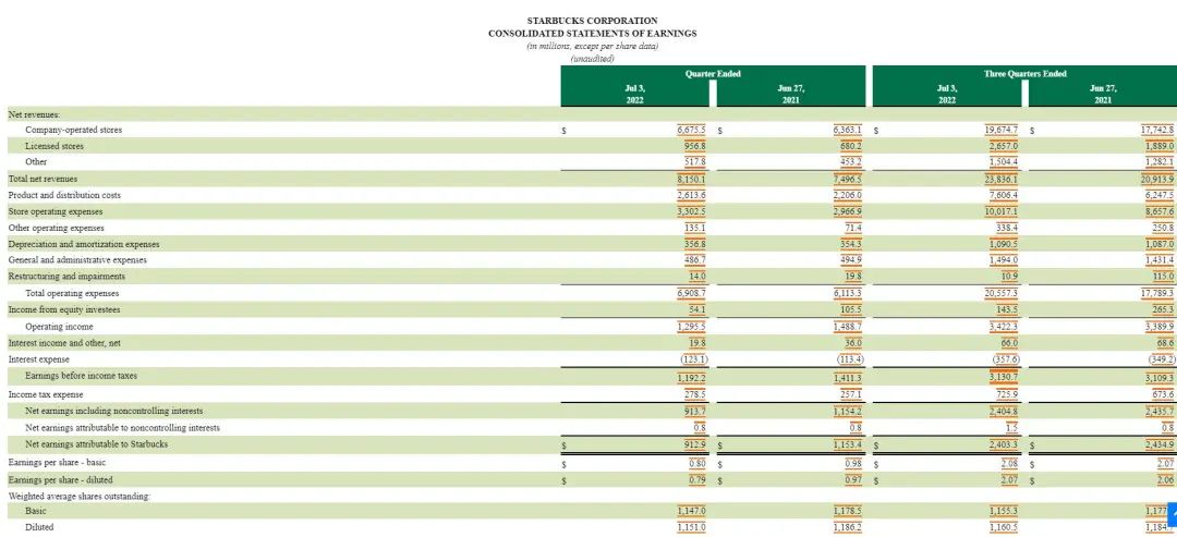 在8月2日,星巴克公布了第三財(cái)季的財(cái)報(bào),營(yíng)收增長(zhǎng)9%,達(dá)到81.5億美元,凈利潤(rùn)為9.129億美元,環(huán)比下滑20.9%。