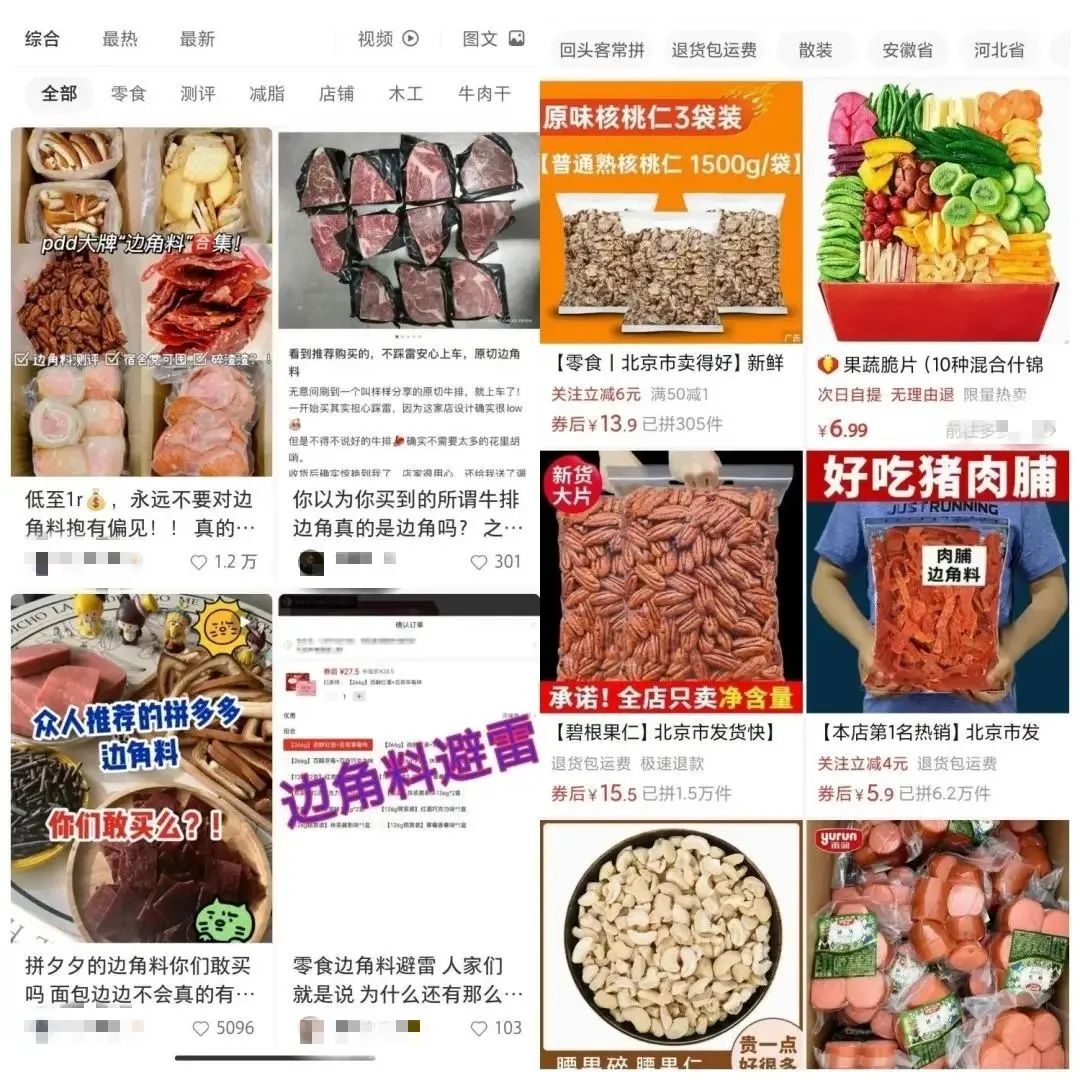 很快,邊角料零食就擴(kuò)展到豬肉鋪、火腿、面包等其他品類,相關(guān)測評貼也成了社交平臺的流量密碼。