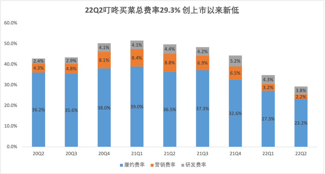 其二:叮咚買菜總費(fèi)率29.3% ,創(chuàng)上市以來新低。