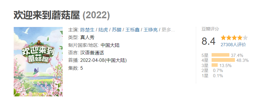 節(jié)目集結了在2007年大火的“0713男團”們,以其跨越13年的深厚友情為積淀,利用《向往的生活》中的“慢旅行真人秀”模式,推出了衍生節(jié)目——《歡迎來到蘑菇屋》,并獲得了口碑與熱度的雙重成功。