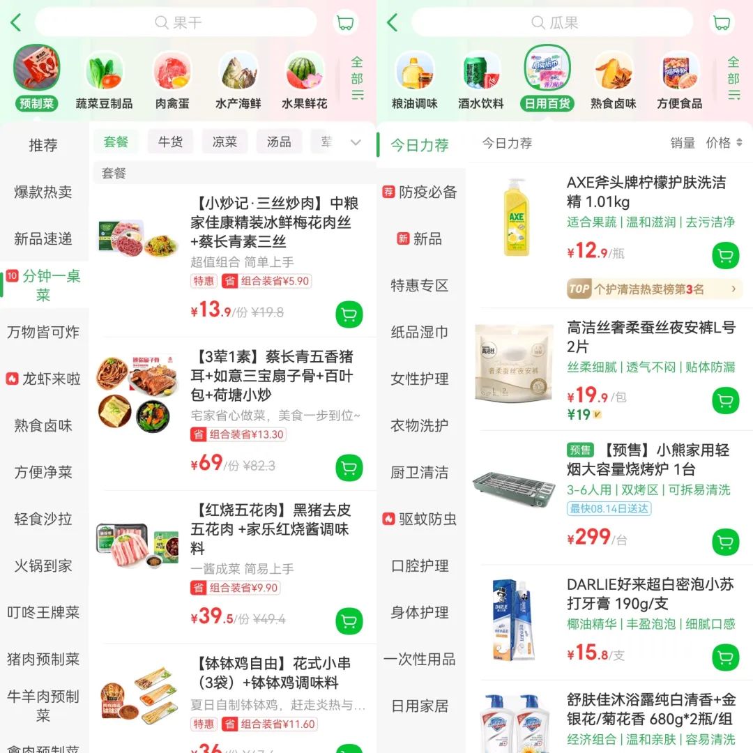 叮咚買菜APP上的預制菜與日用百貨