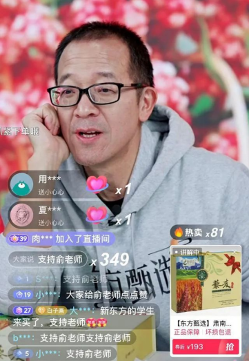 而返回幾個(gè)月前,首場(chǎng)農(nóng)產(chǎn)品直播里的俞敏洪還未能擺脫臉上的書生意氣,也有些遲疑與不自信,甚至?xí)䲠[擺手告訴觀眾“這價(jià)格確實(shí)有點(diǎn)偏貴!