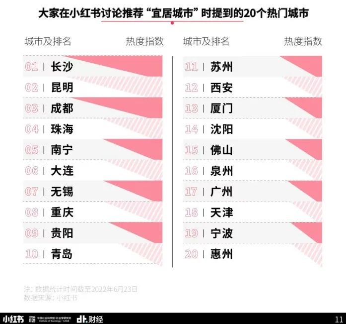 6月29日,小紅書攜手中國社會(huì)科學(xué)院社會(huì)學(xué)研究所、DT財(cái)經(jīng)發(fā)布《蹲個(gè)城市:年輕人選擇城市新需求洞察報(bào)告》,長沙位列「宜居城市」榜首,力壓成都。