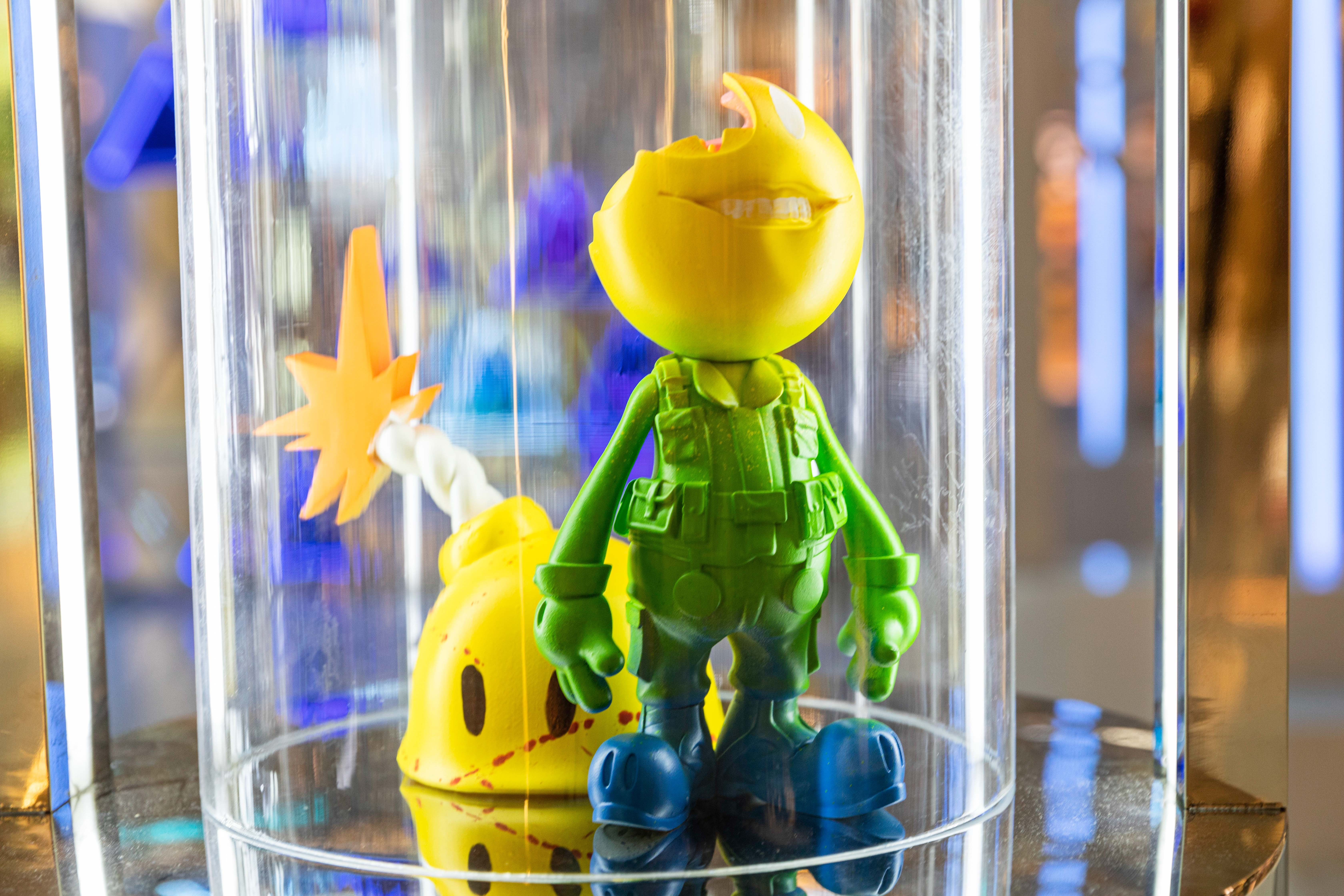 上海ifc商場誠邀國邀請知名潮流藝術(shù)家歐陽儒展出多件大型雕塑﹑不同風(fēng)格的手繪雕塑及NFT藝術(shù)作品。此次展覽中特別增設(shè)的全息投影技術(shù)將全方位展示藝術(shù)家的「彈頭」雕塑作品,通過特殊科技展示虛擬效果的三維雕塑作品, 完美地展現(xiàn)「彈頭」的士兵外在造型及內(nèi)心向往和平的花花世界,用科技糅合藝術(shù)與和平,打破不同領(lǐng)域的界限。同時(shí),展覽更特意展出的8幅藝術(shù)家的NFT 藝術(shù)作品,感受現(xiàn)實(shí)世界與藝術(shù)世界融合的多元宇宙。