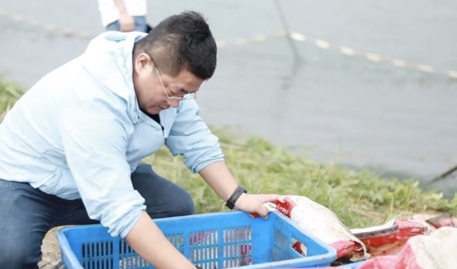 ▲圖為美團(tuán)買菜選蝦師曲江在養(yǎng)殖基地分揀活蝦(攝影:李強(qiáng))