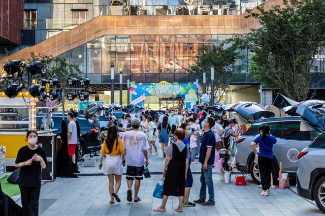 以民謠之夜、爵士之夜、潮玩之夜、搖滾之夜4大主題,升溫8月周末活力氛圍;以飛盤、套圈、丟沙包、魔力粘球等趣味游戲,滿足年輕人花樣運(yùn)動(dòng)方式;以草坪、天幕、躺椅、充氣沙發(fā),營(yíng)造戶外露營(yíng)休息區(qū),充分滿足當(dāng)下年輕人社交、休閑、聚會(huì)、遛娃、打卡的生活需求。