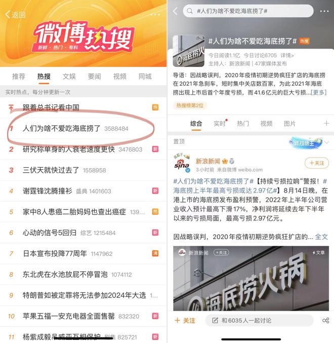 憂(yōu)的是,虧損引發(fā)一系列“連鎖反應(yīng)”:8月15日一早,#人們?yōu)樯恫粣?ài)吃海底撈了# 被拱上了熱搜第一,在評(píng)論區(qū),“價(jià)格貴”、“性?xún)r(jià)比不高”等成為普遍槽點(diǎn)。