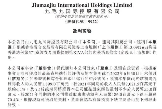 先說(shuō)在港股上市的海底撈,海底撈發(fā)布盈利預(yù)警,2022年上半年公司營(yíng)業(yè)收入預(yù)計(jì)最高下滑17%,凈利潤(rùn)將延續(xù)去年下半年以來(lái)的虧損局面,最高虧損2.97億元。