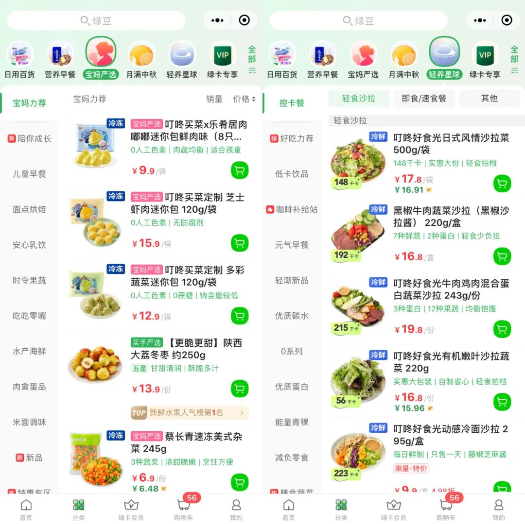在為用戶分層、提供差異化“飲食解決方案”上,“寶媽嚴(yán)選”、“輕養(yǎng)星球”等細(xì)分消費(fèi)場(chǎng)景頻道的打造,讓我們看到叮咚買菜客群正以家庭為單位向生物個(gè)體、甚至標(biāo)簽個(gè)體變遷。