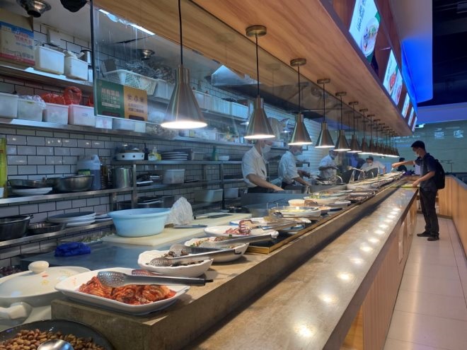 2021年4月起,山東煙臺(tái)本土快餐老牌“藍(lán)白”,也一改以往的小份自取制,推出現(xiàn)炒現(xiàn)賣、稱重計(jì)費(fèi)的新模式,目前已有近20家門店全面升級(jí)成為全新的自選稱重模式。