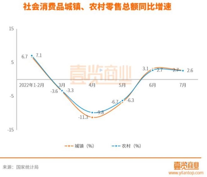 鄉(xiāng)村市場(chǎng)增速回落略小于城鎮(zhèn),表示在消費(fèi)市場(chǎng)環(huán)境遇冷的情況下,農(nóng)村的韌性更好,下沉市場(chǎng)仍然存在一定的想象空間;但在疫情防控常態(tài)化的情況下,7月份城鎮(zhèn)部分的增長(zhǎng)更快,也表示城鎮(zhèn)人群的消費(fèi)能力更強(qiáng)。