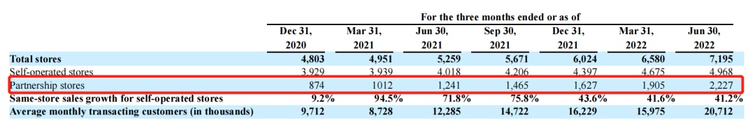 通過直營+聯(lián)營合伙店模式快速擴(kuò)大規(guī)模。從第二季度新店數(shù)據(jù)可以看到,瑞幸有超過一半的新店都是合伙店,目前合伙店有2227家。