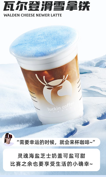 瑞幸也很擅長捕捉熱點(diǎn),去年9月簽約了谷愛凌為品牌代言人,而隨著冬奧會谷愛凌奪冠熱度高漲,瑞幸為谷愛凌代言所推出的瓦爾登滑雪拿鐵、藍(lán)絲絨颯雪拿鐵等咖啡飲品也因此賣斷了貨。