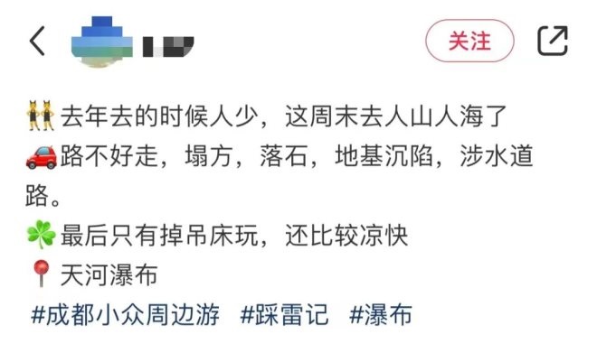 其實(shí),龍漕溝根本不是景區(qū),而是一條泄洪溝。那么,這么多游客是怎么尋到此處來(lái)的呢?不少網(wǎng)友和事實(shí)依據(jù)都把答案指向了小紅書上的“種草”。