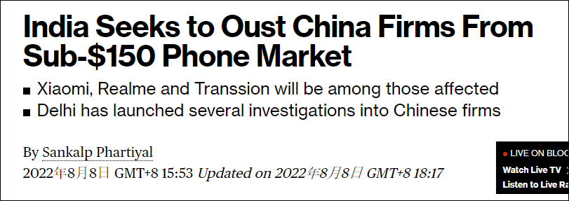 雖然印度《鑄幣報》報道稱,一位印度高級政府官員已否認有此計劃,但印度對于中國智能手機品牌的主導(dǎo)地位確實防備已久。