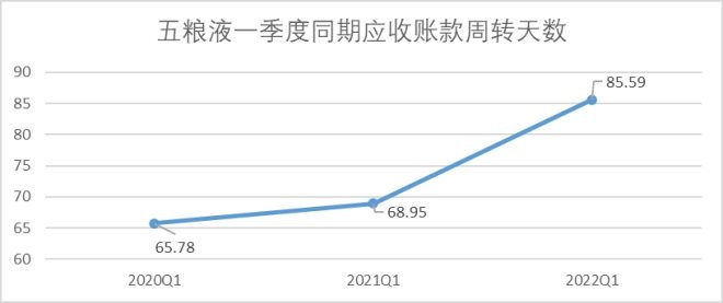 圖:五糧液一季度應(yīng)收賬款周轉(zhuǎn)天數(shù),來(lái)源:Choice金融客戶(hù)端