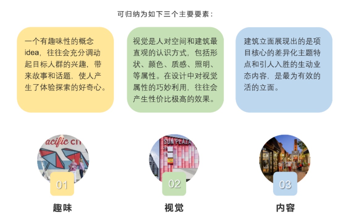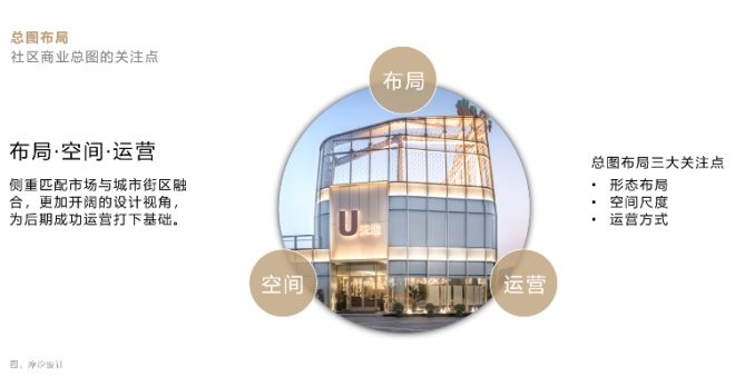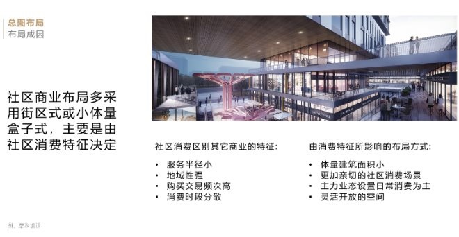 同時,我們所倡導的社區(qū)商業(yè)項目的”設計+經(jīng)營“模式,強調(diào)建筑設計需要與市場需求相匹配,項目產(chǎn)品需要與在地文化相融合,以更加開闊的設計視角,為后期成功運營打下基礎(chǔ)。