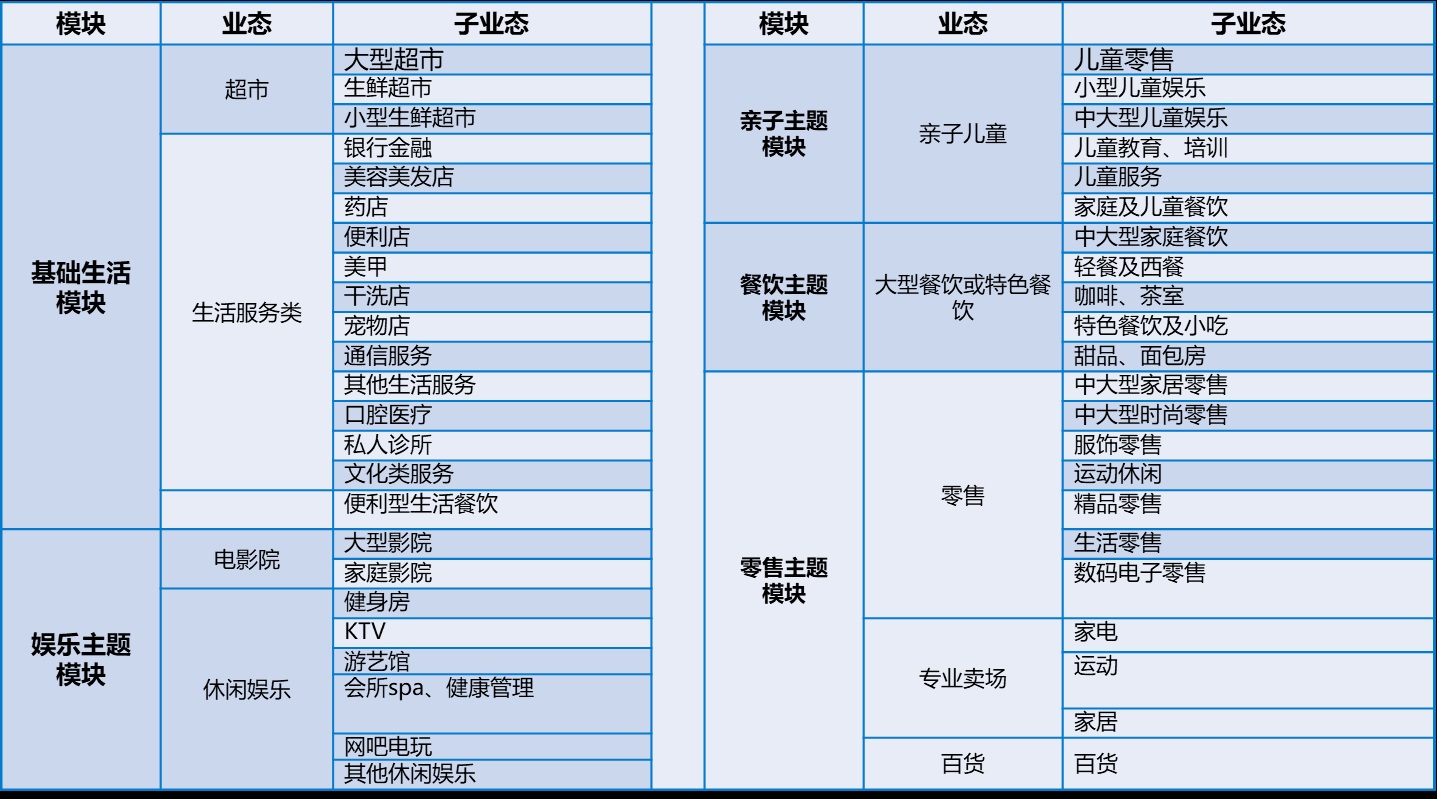 圖:一般生活消費常見業(yè)態(tài)模塊