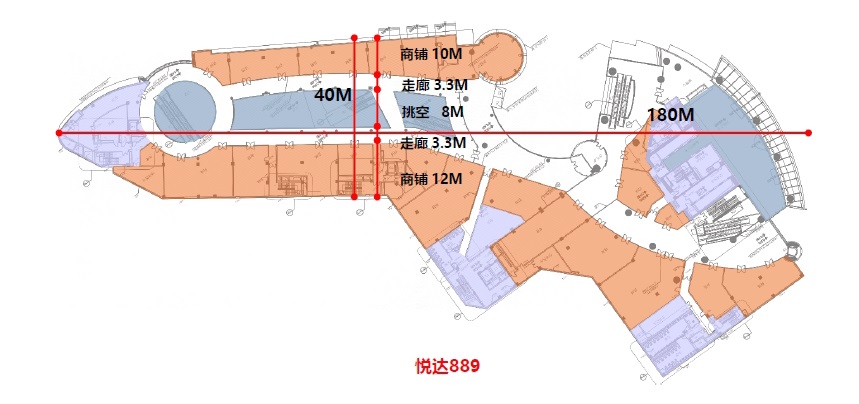 社區(qū)商業(yè)層高設置應能滿足商場空間凈高、裝修空間、設備管線、結(jié)構(gòu)梁高、業(yè)態(tài)特殊需求等多種因素的空間高度需求,一般在5.6M左右。而區(qū)域型購物中心一般在5.8-6M左右。