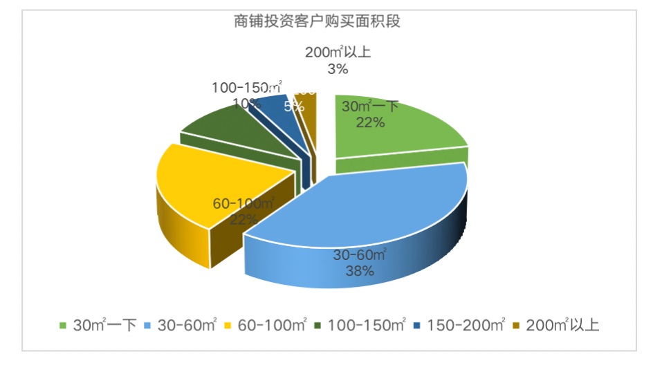 作為社區(qū)型商業(yè)街,多以銷售為主,因此需要避免盲目的設計大面積、高總價的商鋪,以高附加值、高溢價、低總價為原則。30-100㎡商鋪最受追捧,商鋪超過100㎡,客戶購買意愿遞減明顯,面積越大,客戶購買意愿越低。