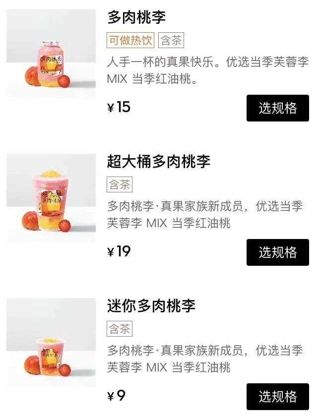 “另外,確定了主產品后,在其他產品結構上,可以去做價格更低的飲品;蛟S葡萄、芒果無法降到10元,但總有能‘降’下來的產品,對于常規(guī)水果茶/奶茶,去做選擇性保留,比如下架2款,保留1款。”熊智超說。