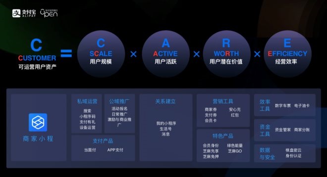 微信以小程序?yàn)榛祝?lián)起公眾號(hào)、視頻號(hào)、朋友圈、社群,打通內(nèi)容、商品和用戶,小程序更像是一個(gè)底座能力;支付寶則以小程序?yàn)楹诵,承接商家?lái)自線上、線下的私域流量,并輔之以公域流轉(zhuǎn)私域的路徑,打通商家的經(jīng)營(yíng)路徑。