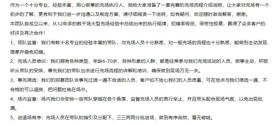 第三種情況是“品牌授意行為”,即花錢支付給第三方傳媒廣告公司,讓后者組織兼職人員充場,按小時(shí)支付費(fèi)用。