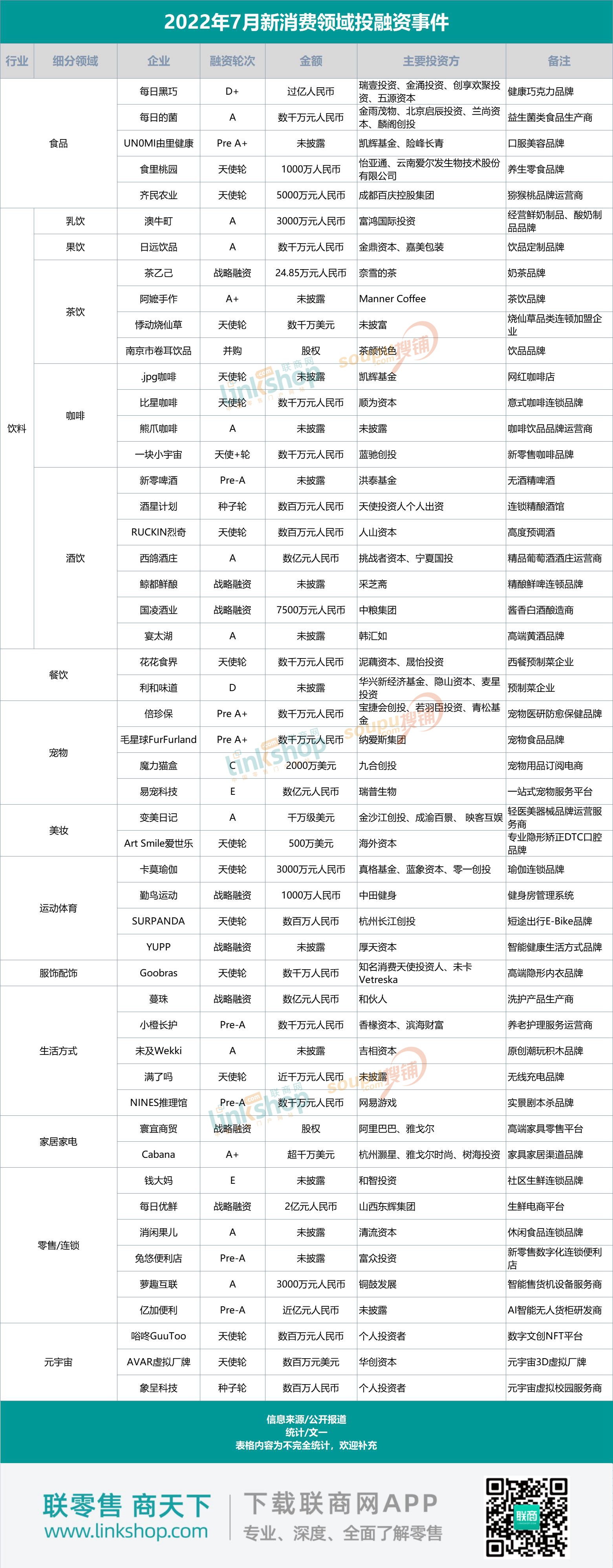 附:2022年7月份新消費品牌融資詳情