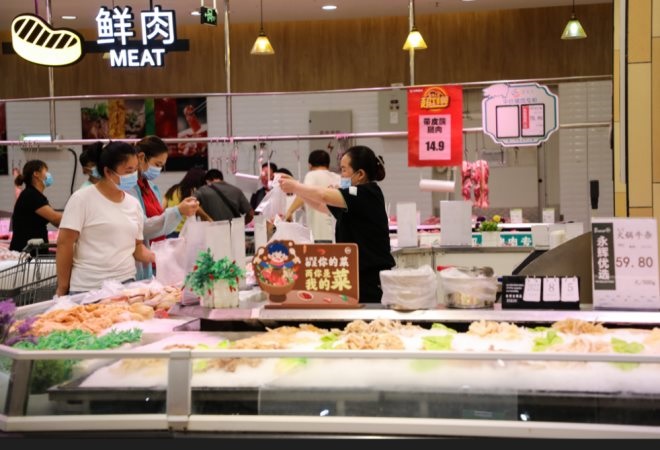 “所有的顧客及員工都必須掃碼、測溫、戴口罩,在掃碼正常的情況下才能進入超市,在消殺方面的話我們是一日三次消殺。此外,購物車在每個顧客用完之后,專門的人回收、消殺!庇垒x超市綏陽店行政主任崔要婷表示,超市在嚴格落實疫情防控措施同時,也備足了貨源!拔覀兠刻於加泄潭ǖ奈锪鬈嚭蜕r車來配送貨物,我們所有的貨都是貨源充足,價格方面是很平穩(wěn)的!
