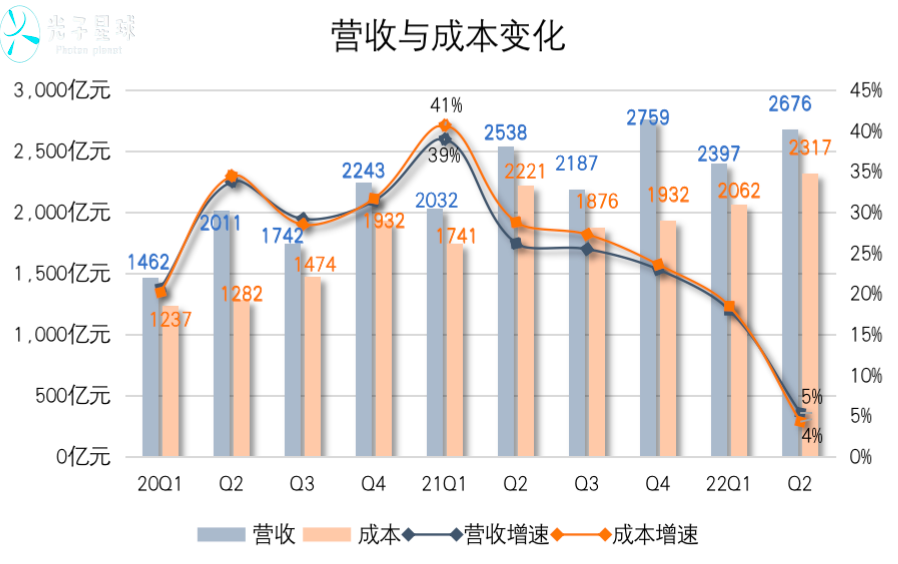 8月23日,京東集團(tuán)公布2022Q2報(bào)表,數(shù)據(jù)顯示,該季度實(shí)現(xiàn)營(yíng)收2676億元,相比去年同期增長(zhǎng)5%。受疫情影響,京東整體成本維持上升趨勢(shì),同比增長(zhǎng)4%。由于本季度對(duì)業(yè)務(wù)進(jìn)行了相當(dāng)比例的優(yōu)化,成本得到控制。