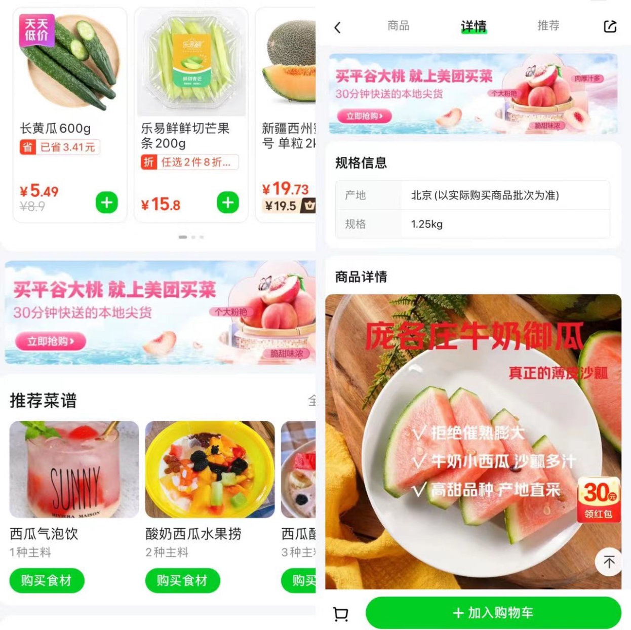 美團(tuán)買菜相關(guān)負(fù)責(zé)人透露,在北京地區(qū),包括龐各莊西瓜、平谷大桃等農(nóng)產(chǎn)品,密云魚(yú)、月盛齋牛羊肉等肉禽商品,以及天福號(hào)、稻香村等老字號(hào)商品的“本地尖貨”在線上平臺(tái)銷售正旺。