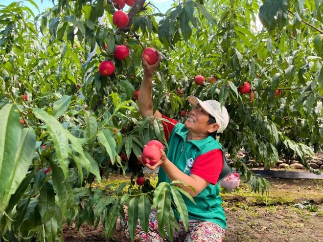 ▲圖為平谷本地桃農(nóng)喜迎收獲。(攝影:王婷)