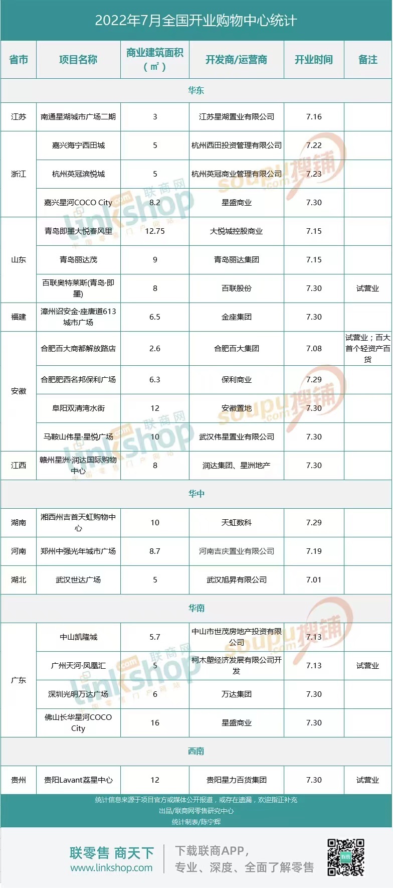 附:2022年7月全國(guó)新開商業(yè)項(xiàng)目統(tǒng)計(jì)表
