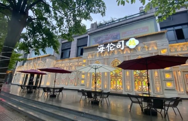 今年5月,第一家海倫司·越在湖北省利川市正式開業(yè),白天出售咖啡、奶茶和披薩等下午茶餐食,晚上則提供酒水、燒烤、鹵菜等食物。